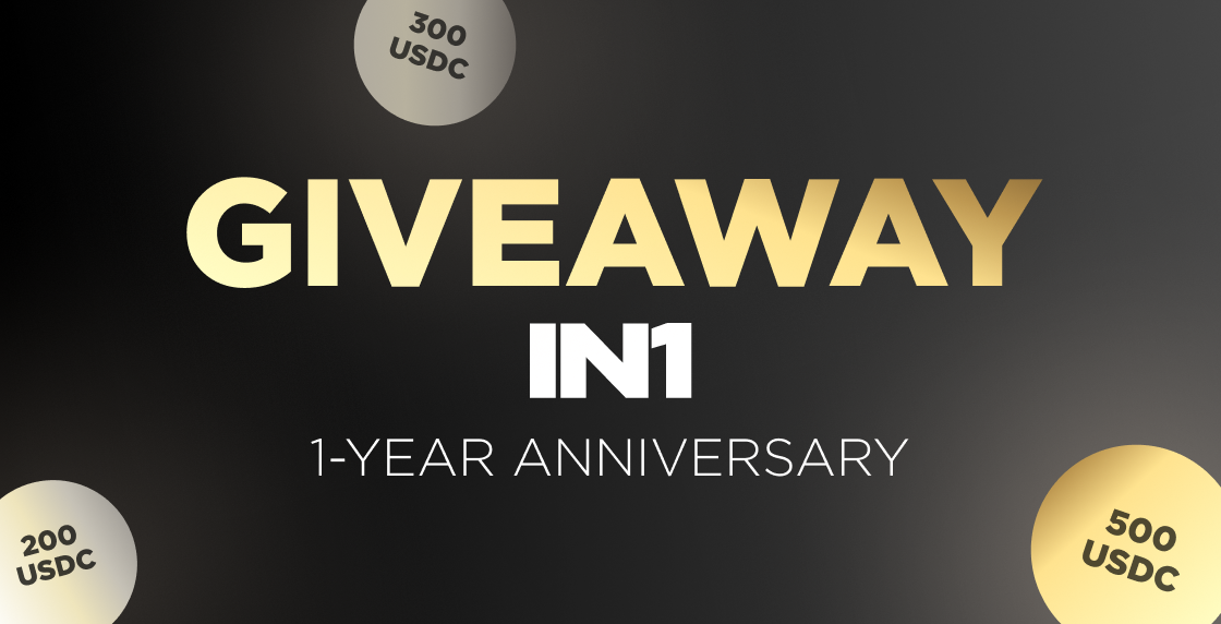IN1 is celebrating its first anniversary — and we’re kicking off a big holiday giveaway!This December, your festive spending with the IN1 card can turn into real crypto rewards — up to 510 USDC. Buy gifts, plan your trips, pay for your holiday expenses with the IN1 card — and automatically collect chances to win.